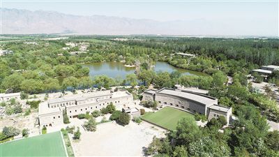 经过修剪的葡萄藤、报废的橡木桶、随处可见的怪石……漫步在贺兰山东麓的葡萄酒庄中,你会发现这里的主体建筑、园内道路等全部取自治理矿坑时挖出的砾石、卵石和周边的遗弃建材。中式园林美学与葡萄酒文化巧妙结合,给游客全新的游览体验。